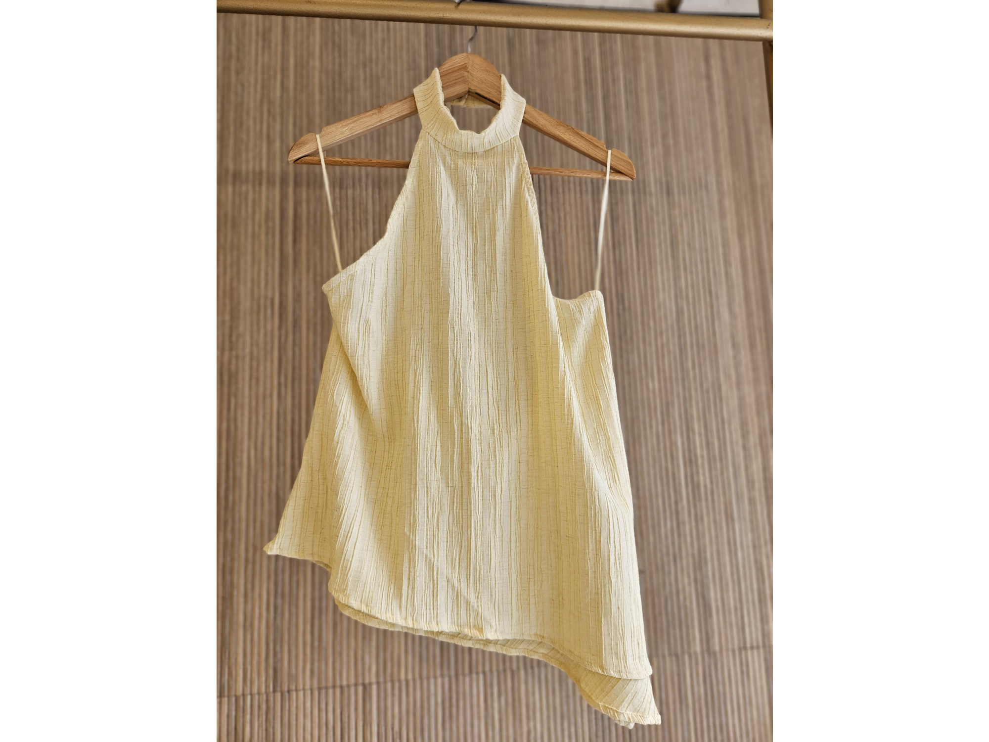 Top ALANA Compartir por WhatsApp Copiar enlace Llevando 3 Prendas del mismo art 10% off (talle y color surtido) El descuento se aplica una vez confirmado el pedido. Talle unico Presentaciones Seleccioná las opciones que quieras.Natural$29.000Amarillo$29.000Verde$29.000Tostado$29.000Negro$29.000 Observaciones 0 / 150 Encontrá productos relacionados LINO PLISADO (5)