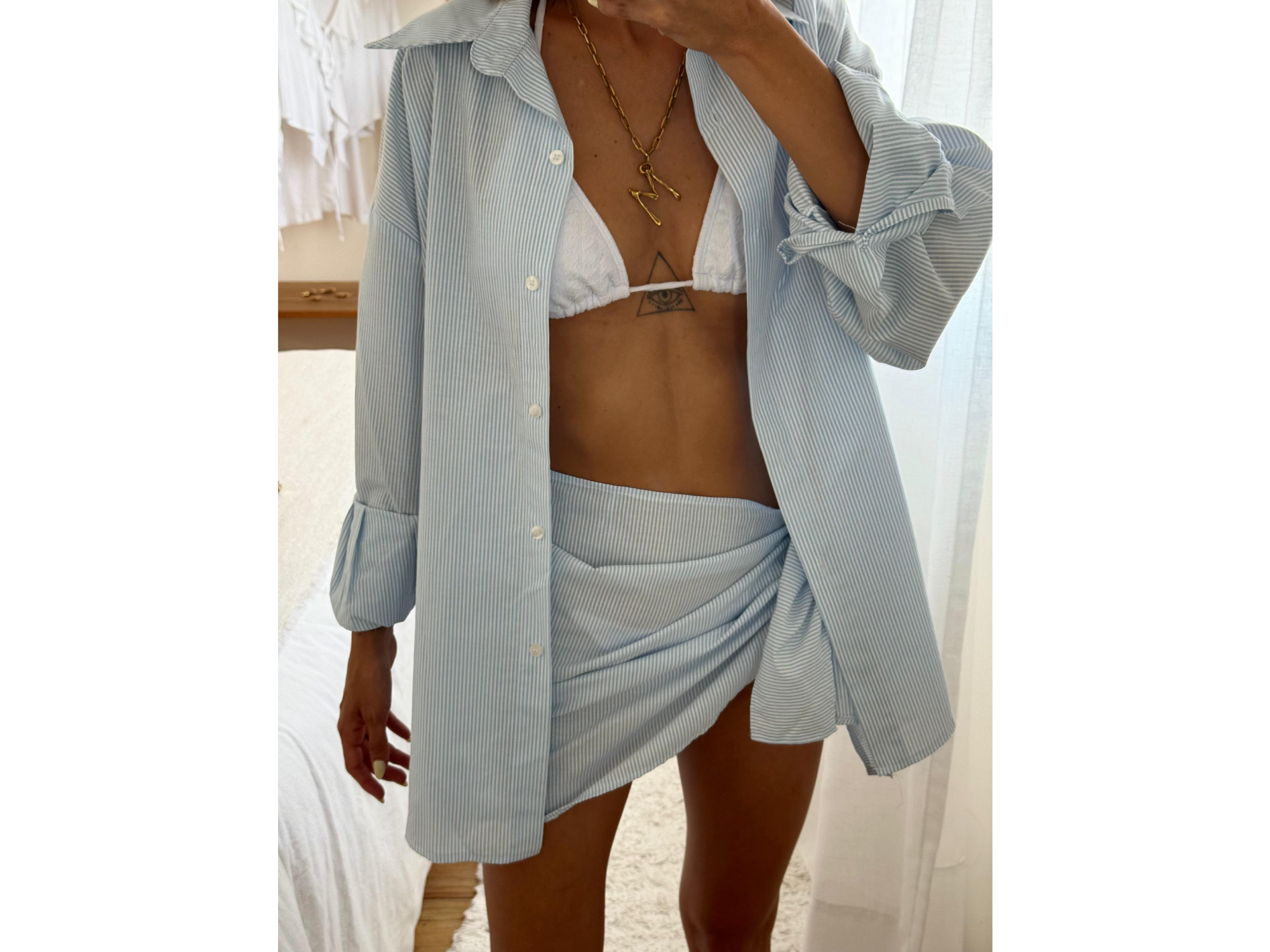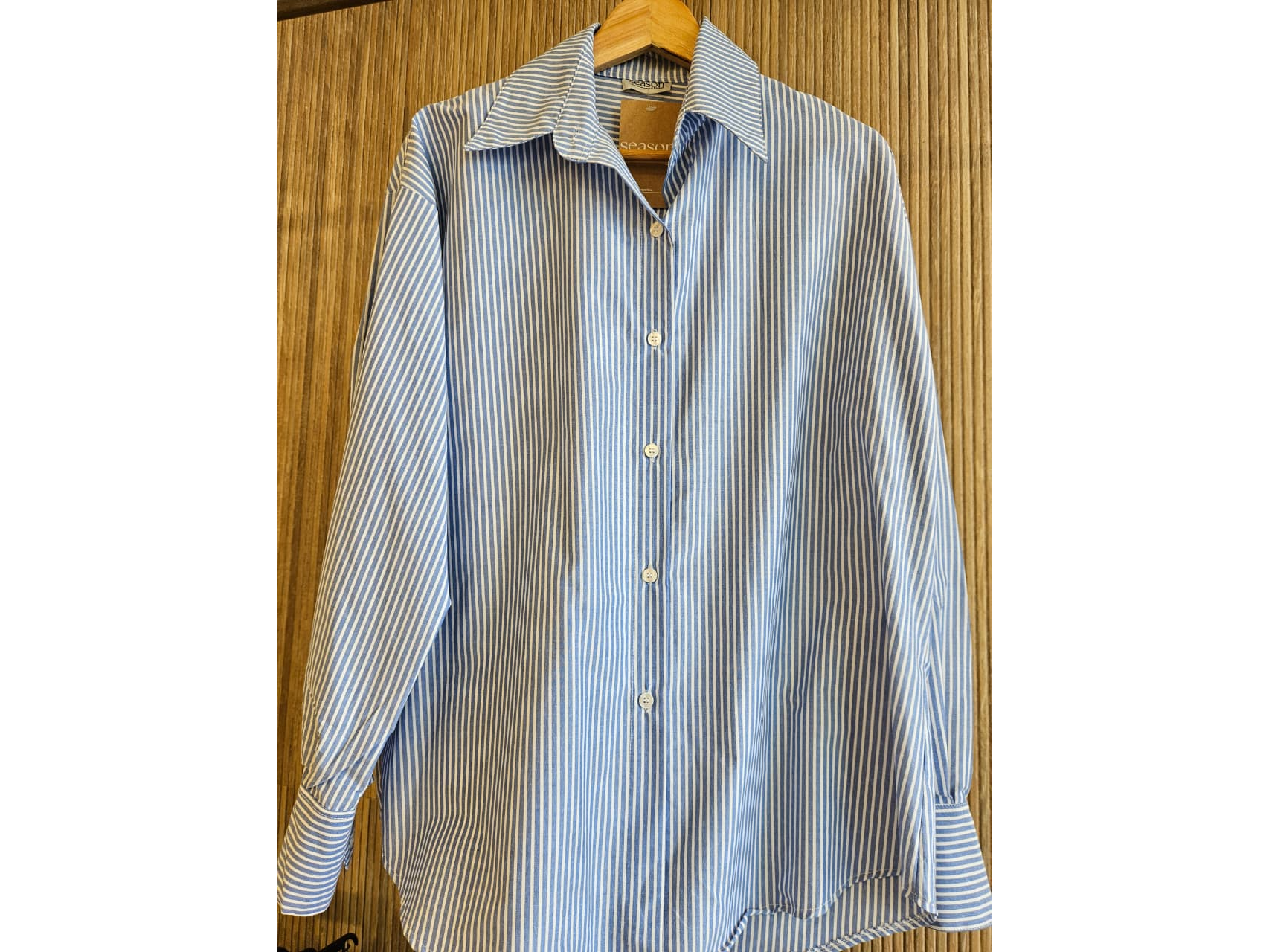 Camisa EMMA PRINT poplin Compartir por WhatsApp Copiar enlace Llevando 3 Prendas del mismo art 10% off (talle y color surtido) El descuento se aplica una vez confirmado el pedido. textil: poplin Camisa de poplin Oversize, botones en puño y cartera a tono. Presentaciones Seleccioná las opciones que quieras.Rayas Azul$34.000Camel Sin stock $34.000Rayas Celeste (Foto con pareo) 2 unidades en stock $34.000 Observaciones 0 / 150 Encontrá productos relacionados POPLIN ALGODON (5)