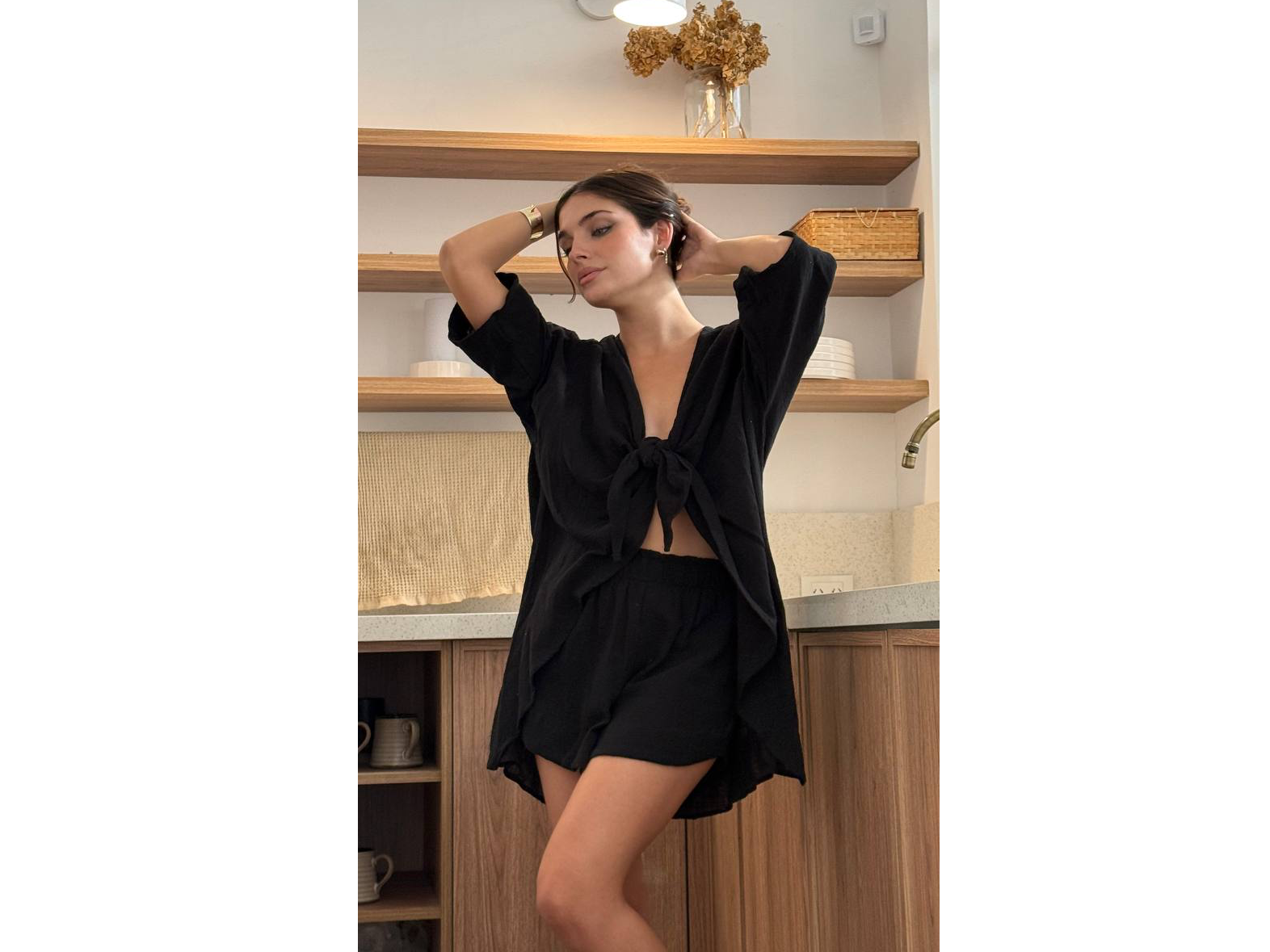 Kimono para anudar adelante.